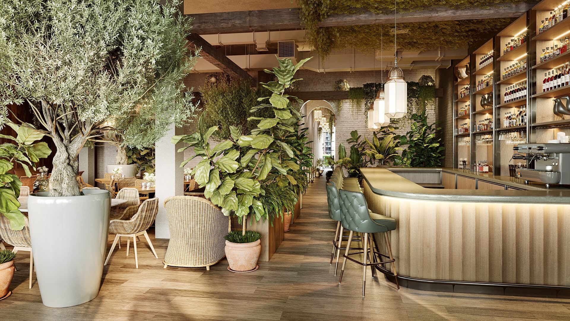 Restaurant visualization focuses on creating immersive views of dining spaces, bars, kitchens and outdoor seating areas. These specialized renders help owners perfect their establishment's ambiance through accurate lighting studies and material selections. From testing furniture arrangements to showcasing signature dishes, CGI helps restaurants maintain brand consistency while optimizing their space.